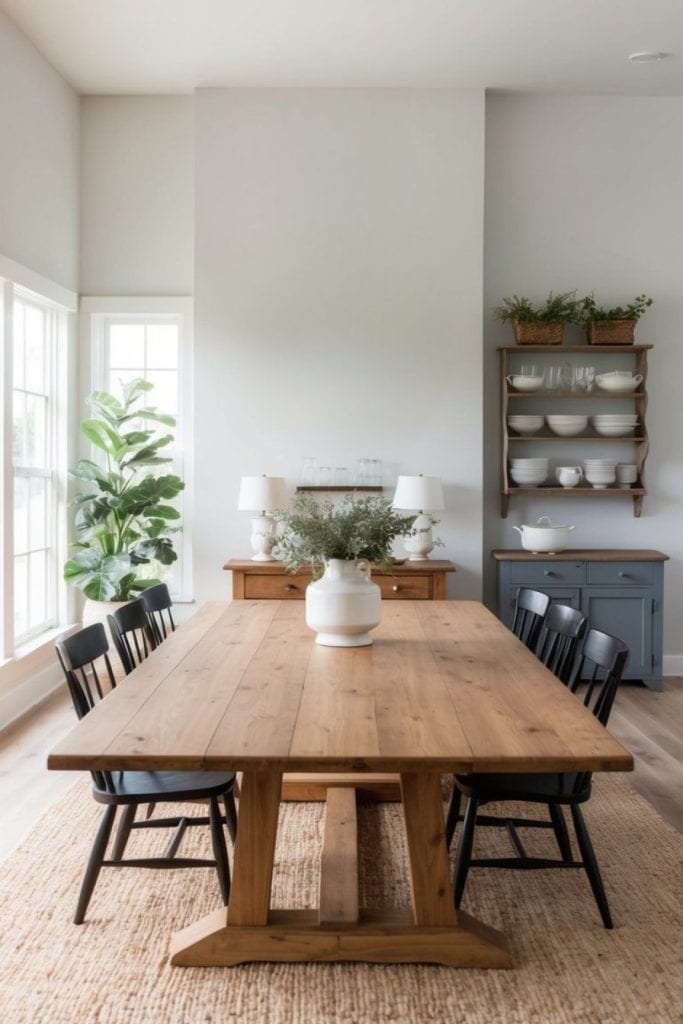 Wooden tables, vintage decor, and soft textures are key parts of farmhouse dining style. These pieces work together to make rooms that feel lived-in and loved.